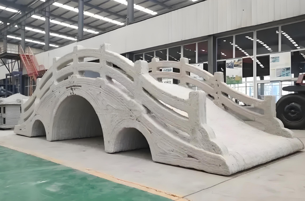 中建八局工程研究院、三公司联合东南大学张亚梅教授团队、南京绿色增材智造研究院共同完成了国内首座混凝土3D打印UHPC曲线梁桥的示范应用。这一项目全面展示了3D打印技术在桥梁设计与高效建造中的潜力,提升了现有打印材料、软硬件一体化、质量控制与验收等技术水平。